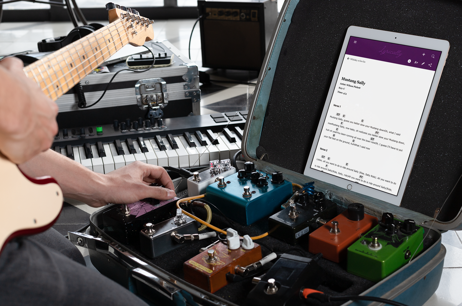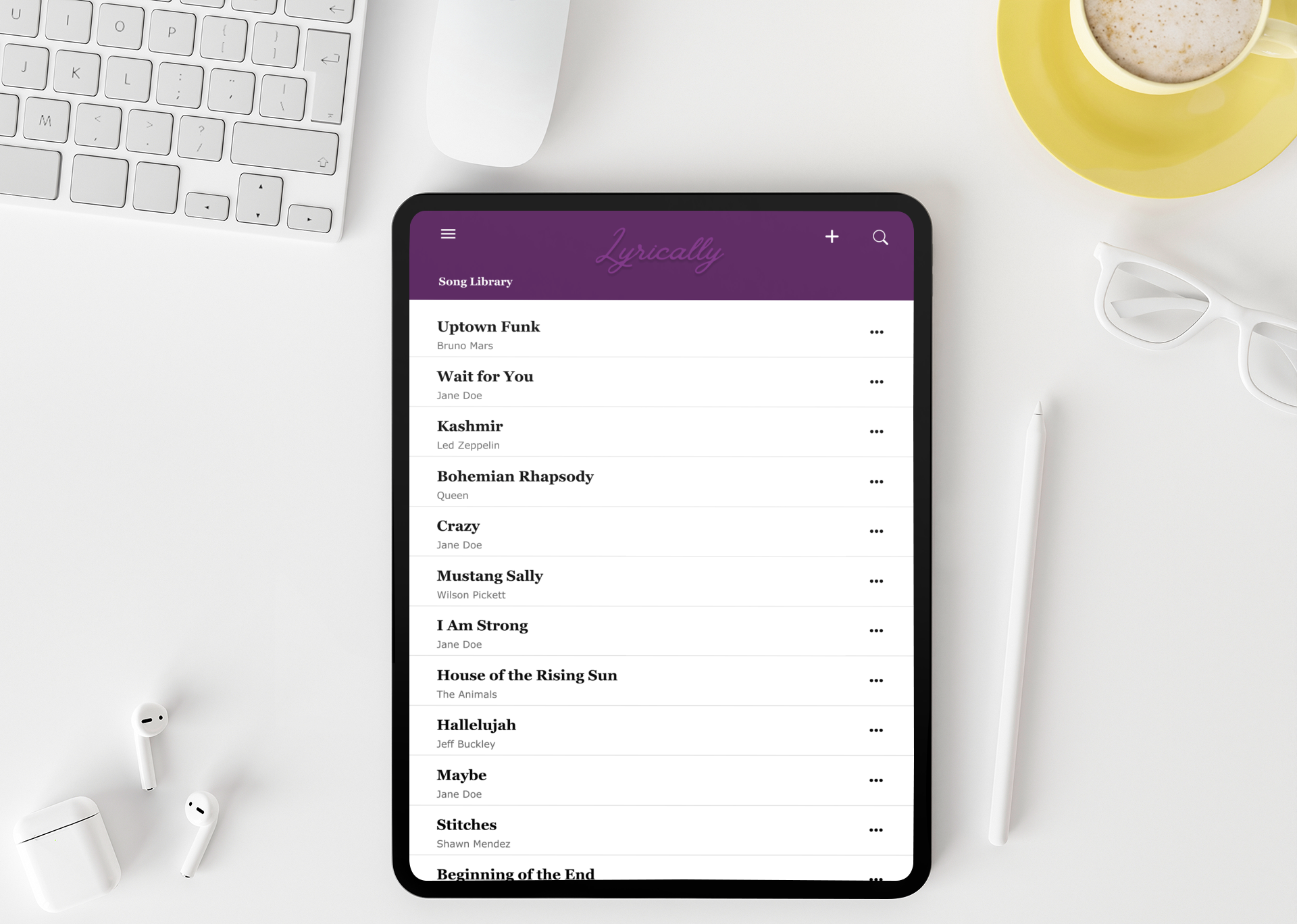 Songwriters often find themselves having to play cover songs (other people's songs), along with their originals, in order to get paid from a venue, however, they have no way to create a setlist that will store both types of songs, originals and covers. This is a problem because it leads to unprofessional performances by the musician. I designed Lyrically as a solution to this problem.